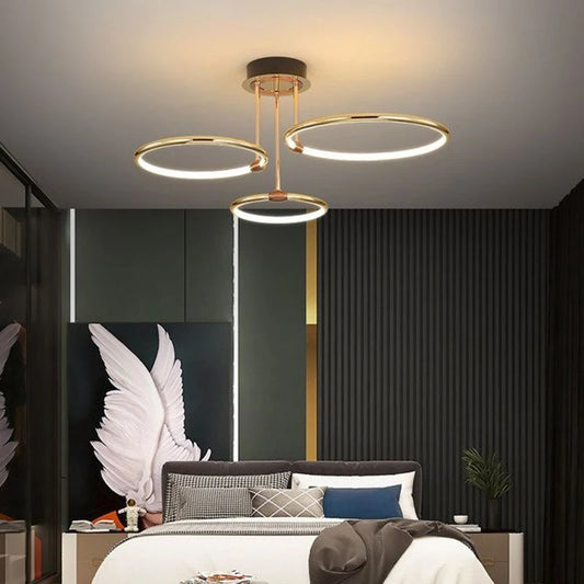 "CircleShine" ceiling light consisting of 3-6 circles in gold and black