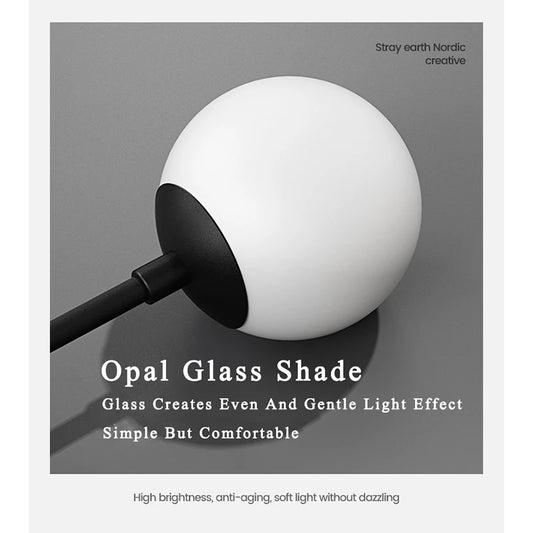 Glass pendant lamp with up to 3 heads and adjustable hanging cable